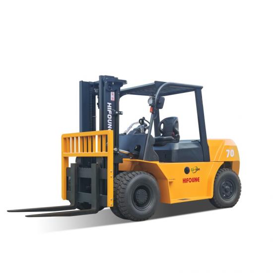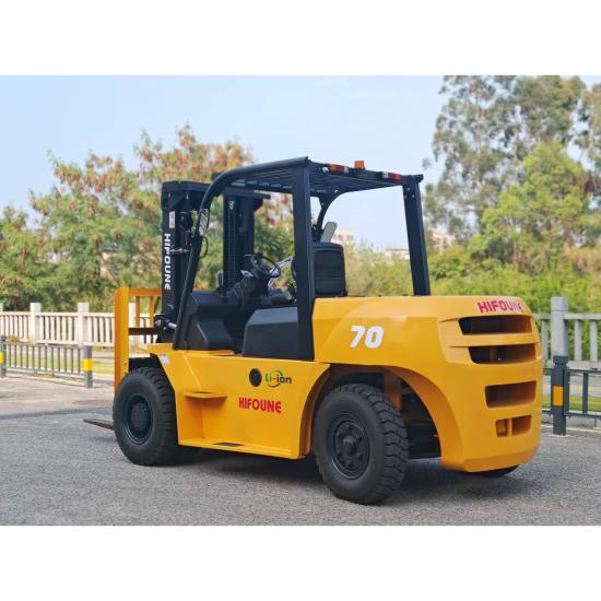 A Hifoune FB50 é uma empilhadeira elétrica contrabalançada de alto desempenho com capacidade de 5 toneladas. Ela vem de série com uma bateria de longa duração de 153V 230Ah, proporcionando grande autonomia. Este modelo também oferece configurações de tonelagem opcionais para atender com flexibilidade a diferentes condições de trabalho.
